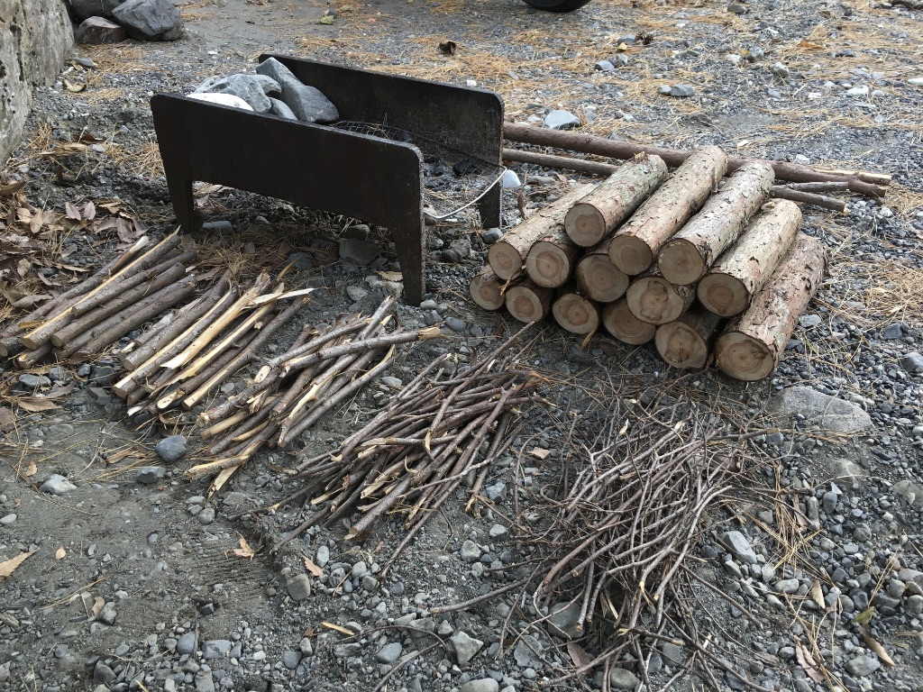 受付では薪も販売されていたが、自然に囲まれ枯れ木や倒木もたくさんあったため薪拾いには困らなかった。