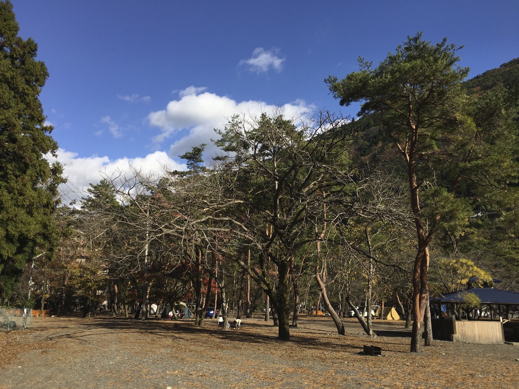 キャンプ場奥から撮影。この写ってる範囲もすべてフリーのテントサイトのため、混みすぎて利用できないことはほとんどなさそう。